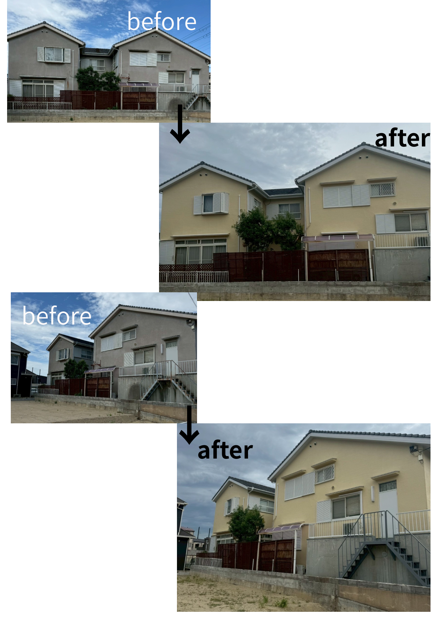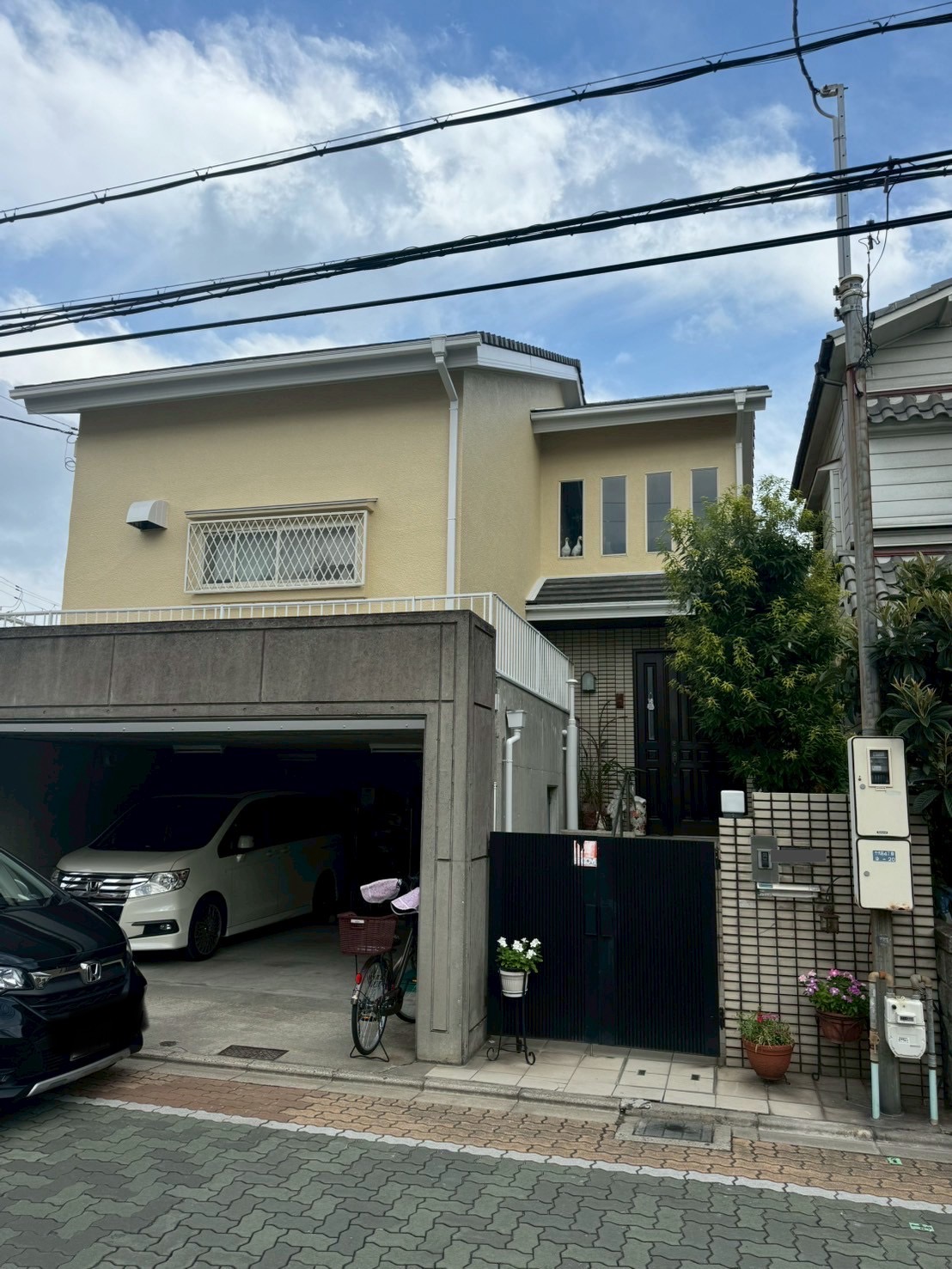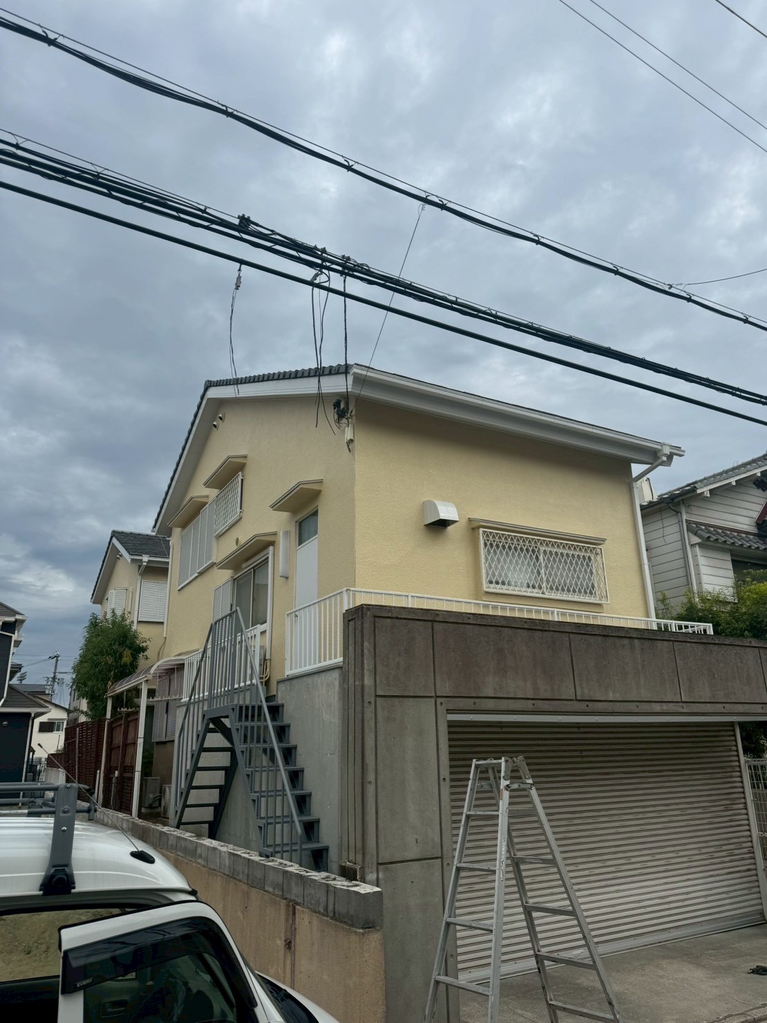 外壁はイエロー系( 日本ペイントパーフェクトトップND-500)に塗り替え、やわらかく温かみのある印象に生まれ変わりました。